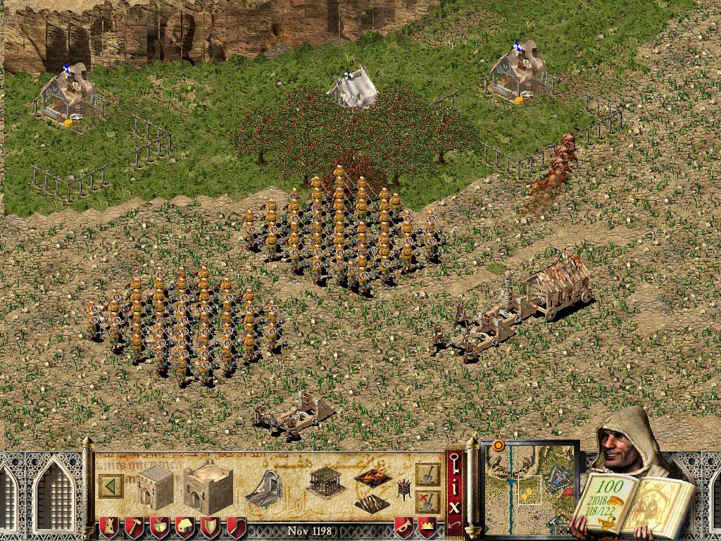 Играл на карте "Провинция Бодрум", с приемуществом для бота-противника, "Мало золота, мало войск". Играем без раша, с быстрым развитием, однако можно не спешить. Маршал - бот, не обладающий "скоростью реакции". Упор делаем на наемные арабские войска и, соответственно, на продажу. Ставим (помимо амбара, естественно) рынок, шесть лесопилок, четыре яблоневых сада, расширяем склады на три ячейки (до четырех), сразу же, не дожидаясь первых поставок, докупаем дерево и ставим четыре хижины, на залежи же камня и железа - каменоломни, рудники. У меня в целом получилось пять каменоломень, восемь рудников. Соответственно с нуждами населения, на вырубленных лесорубами участках, ставим ещё два яблоневых сада. Распродаем всё поступившее нам за это время дерево и первые партии камня.